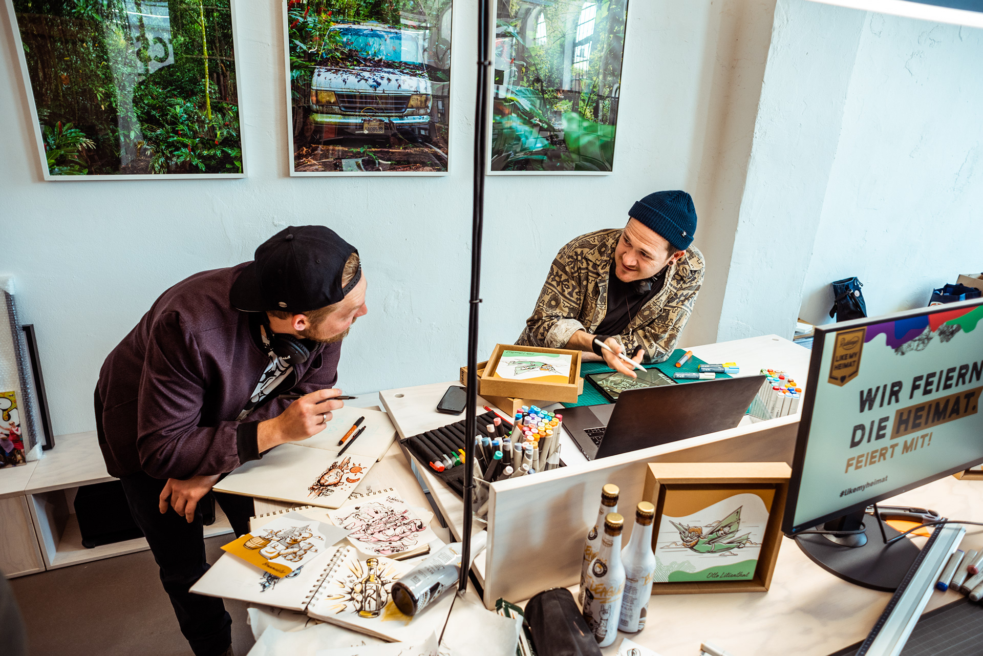 Illustrations for a campaign by Radeberger. Collaboration work between Kai Siegel (Aka.Tulip) and myelf. Over the course of 2 months people could send in what "home/homeland"//ger. "Heimat" means for them. From various monuments and sightseeing places to emotional little stories, we received over 200 entries. Kai and I than sat down and illustrated each and every entry with charming artworks. It was never our goal to teach people, but just to put a smile on their face. To display some of the meanings of Heimat, murals were painted in 4 big cities of germany, showing a selection of our artworks The whole campaign ended in the "like my Heimat" Party in Dresden. Thx @ Radeberger for this opportunity and @Cromatics for the beautiful photos and videos